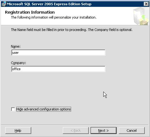 The next thing to do will be to set the necessary configuration options in relation to your installation of Microsoft SQL Server. The first settings you will need to confirm are your name and company.